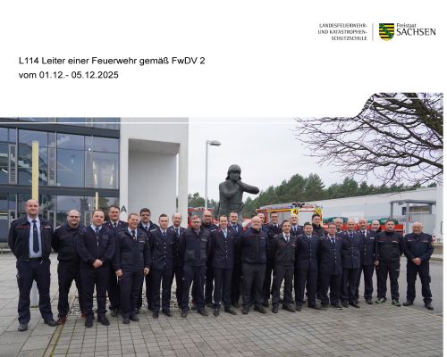 Kamerad Martin Klapproth (OF Kitzen) besuchten in der Zeit vom 01.12.-05.12.25 an der LFS Sachsen in Nardt den Lehrgang „ Leiter Feuerwehr“. Wir wünschen alles Gute für die kommenden Herausforderungen.