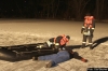 Trotz des anhaltenden Dauerfrostes ist ein sicheres Betreten von zugefrorenen Flüssen und Seen weiterhin nicht gegeben. Die Gefahr ins Eis einzubrechen, sollte deshalb auch bei kleineren Gewässern nicht unterschätzt werden. Deshalb änderten die Kameraden der Freiwilligen Feuerwehr Pegau am Montagabend kurzfristig ihr Dienstprogramm und übten stattdessen das Retten von Personen auf Eisflächen. Nach kurzer Theorie im warmen Gerätehaus fuhren 20 Einsatzkräfte bei Minus 16 Grad zu den Carsdorfer Teichen am nördlich Stadtrand. Im Scheinwerferlicht des Beleuchtungsanhängers erläuterten die Ausbilder Ronny Wiesner und Frank Buchmann noch einmal die genauen Vorgehensweisen, um die etwa 15 Meter vom Ufer entfernt liegende Person - simuliert von einer Puppe - sicher retten zu können. "In Pegau haben wir zwei Möglichkeiten, einmal mit Steckleitern und unserem Schlauchboot", sagte der stellvertretende Wehrleiter Wiesner. Ausgerüstet mit Schwimmweste und per Seil von den Kameraden gesichert, bahnten sich die Übungsteilnehmer den Weg zu dem vermeintlichen Opfer. Kein leichtes Unterfangen, das bei den eisigen Temperaturen enorm an den Kräften zehrte. Vor allem für die vielen jungen Einsatzkräfte stellte diese Übung eine wichtige Erfahrung dar. Fehler sind aber auch noch im Anschluss an eine erfolgreiche Rettung des Opfers möglich, die bis zum sogenannten Bergungstod führen können, erklärten die Ausbilder. Wird eine unterkühlte Person zu schnell erwärmt, fließt das kalte Blut zu schnell zu den überlebenswichtigen Organen im Körper und es kommt zu Komplikationen. Deshalb sollte bei Eisunfällen immer der Rettungsdienst verständigt werden. Nach knapp 45 Minuten praktischer Übung ging es für die durchfrorenen Kameraden zurück ins Gerätehaus. "Das war heute eine gute Leistung von unseren Leuten, die alle freiwillig mit hier an den Teich gekommen sind. Dafür meinen großen Respekt und Dank", lobte Wiesner zum Abschluss. Gleichzeitig mahnte er äußerste Vorsicht beim Betreten der Eisflächen an. Jeder Bürger sollte sich über die lauernden Gefahren im Klaren sein. Olaf Becher Quelle: LVZ.de |