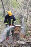 Im Waldstück zwischen dem Pegauer Herrenweg und der Weißen Elster surrten die letzten Wochen wieder die Kettensägen. Allerdings hatte die Aktion neben der Pflege des Areals auch einen anderen Hintergrund. Nun schon zum dritten Mal wurden hier Kameraden der umliegenden Wehren im Umgang mit der Motorsäge geschult. Nach einer Theorieeinheit ging es für 10 Feuerwehrmänner aus Wiederau, Elstertrebnitz und Pegau für 3 Tage zur praktischen Umsetzung in die Natur. "Die Ausbildung vor Ort hat einige Vorteile. Wir müssen keine weiten Wege in Kauf nehmen und die Kameraden unserer Region lernen schon jetzt die Zusammenarbeit, die später im ortsübergreifenden Einsatz wichtig ist", erklärte Ausbilder und Wehrleiter Mario Zetzsche aus Groitzsch. Gemeinsam mit Roland Lorenz von den Pegauer Brandschützern leitete er den Lehrgang, der sonst auf Kreisebene ausgeschrieben ist. Laut Unfallschutzbericht gilt die Arbeit mit Kettensägen als eine der gefährlichsten Tätigkeiten überhaupt. Umso wichtiger stellt sich deshalb eine gute Ausbildung dar. Neben dem großen Thema Arbeitsschutz kamen verschiedene Fälltechniken mit den unterschiedlichsten Hilfsmitteln, wie beispielsweise die Unterstützung durch eine Motorwinde, zur Anwendung. "Meist hat die Feuerwehr ja keine einfachen Bäume zu fällen. Oft sind die Objekte schon durch Blitzschlag, Sturm oder Unfälle geschädigt, was besondere Umsicht verlangt", so Zetzsche, der sich sehr zufrieden mit den Lehrgangsteilnehmern zeigte. Entsprechend konnten alle 10 Kameraden die Prüfung erfolgreich meistern und ihr Können nun in den jeweiligen Ortswehren anwenden.